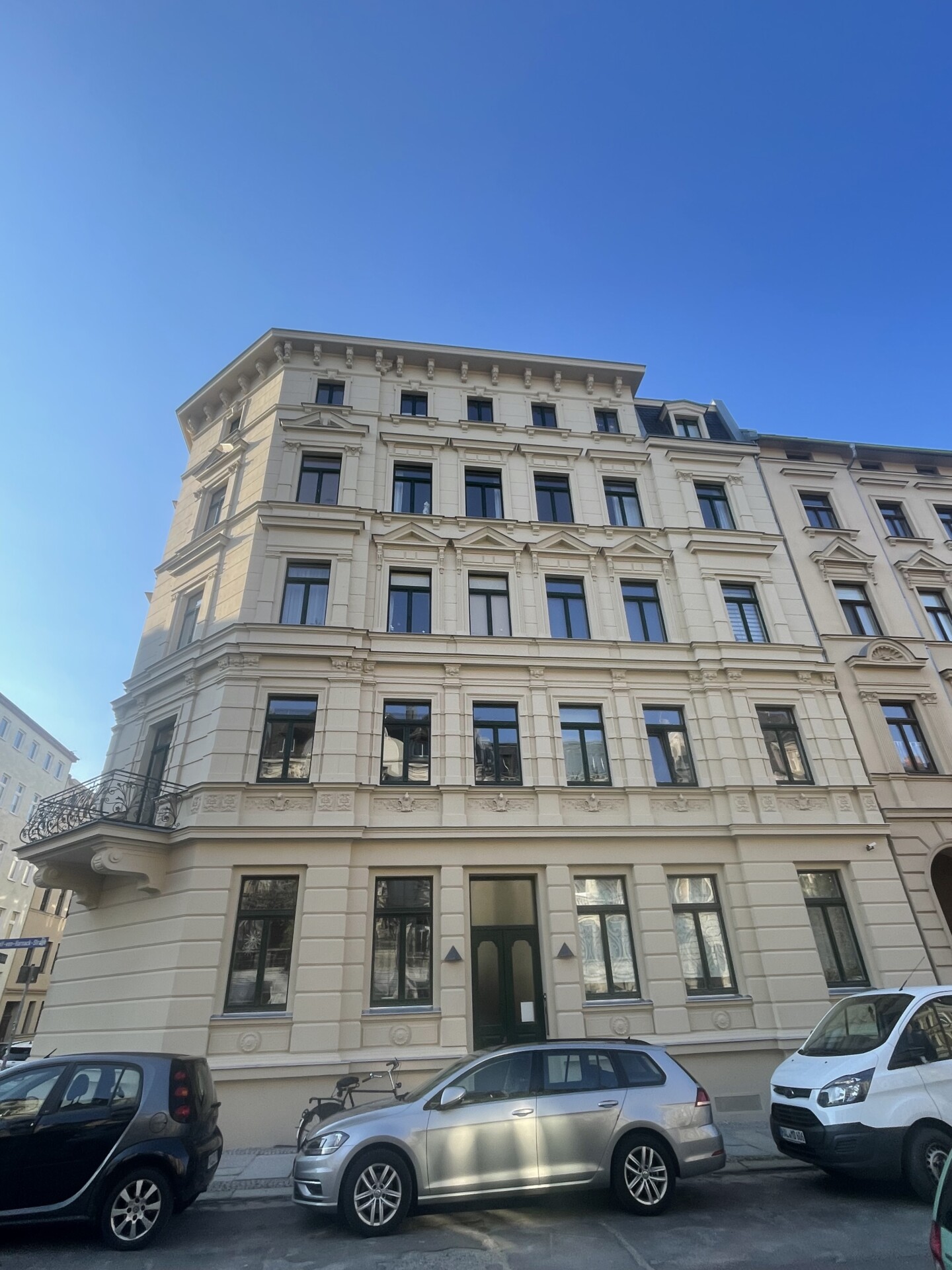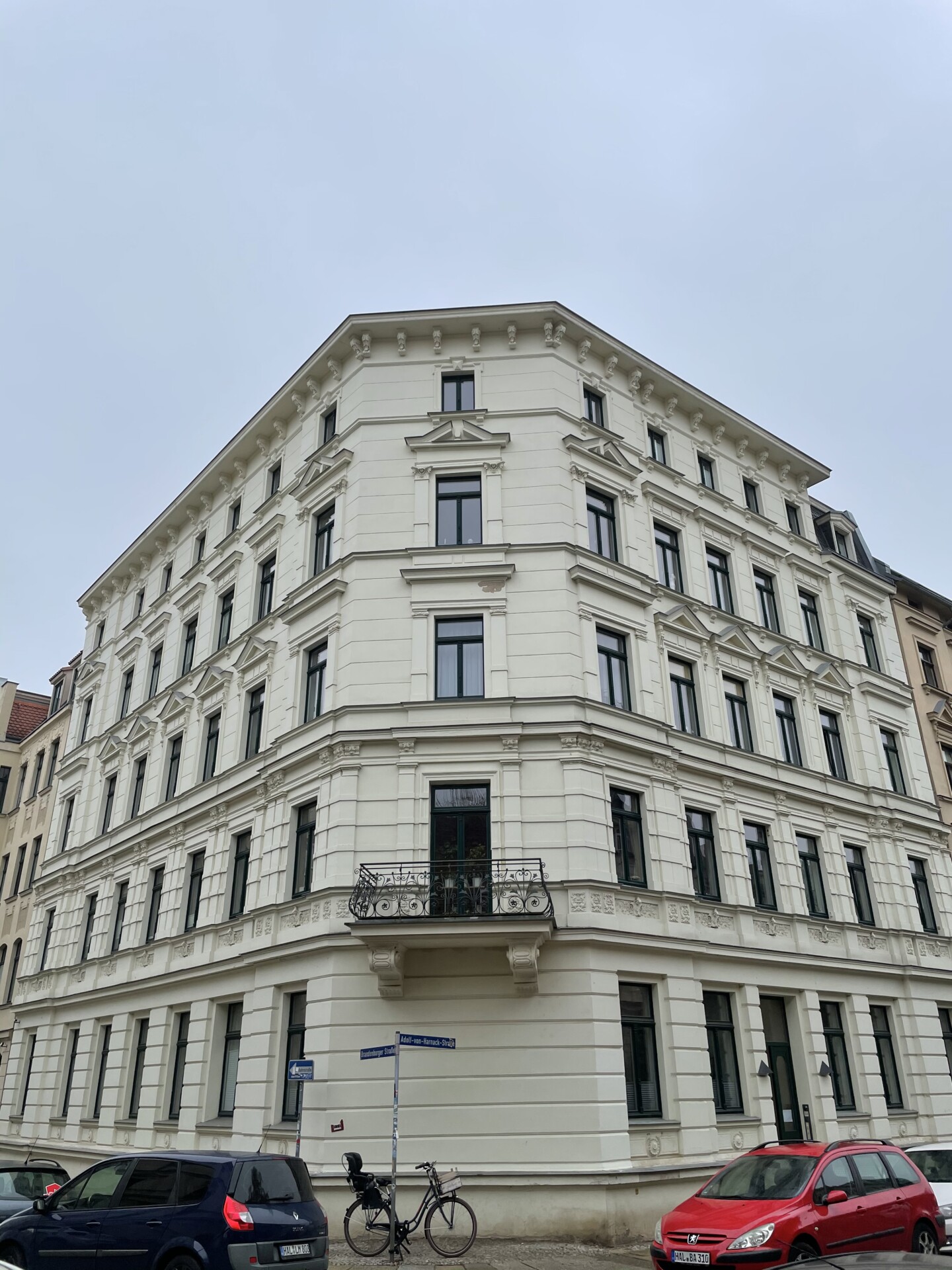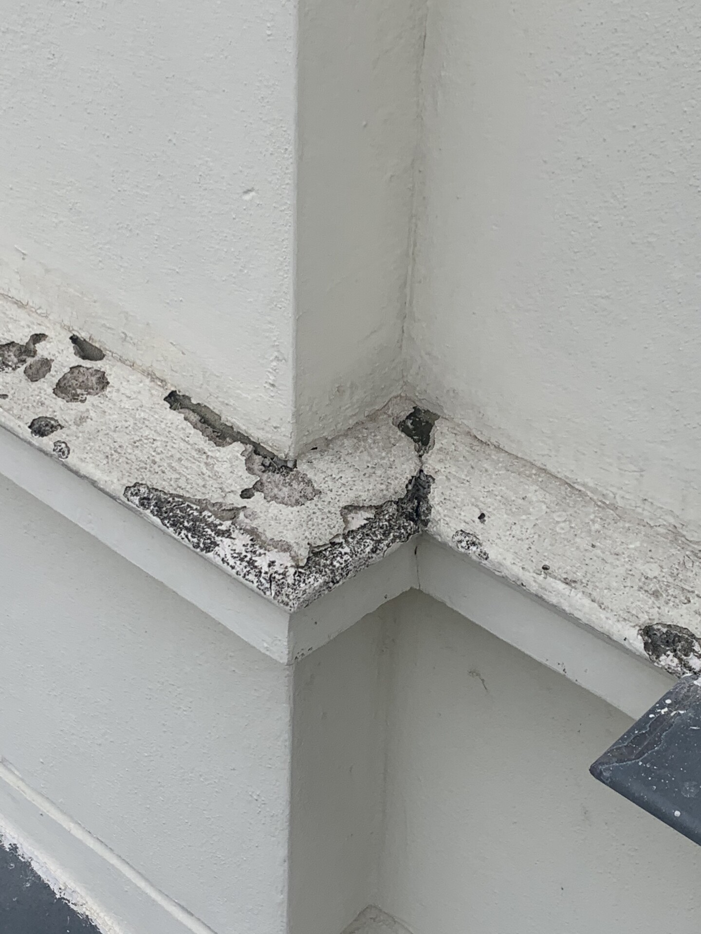 Fassade nach SanierungsarbeitenFertiggestellte FassadeFassadendetail Fensterachse nach FertigstellungFassadenverblechung nach SanierungSanierter BalkonFassadengesims geschädigt vor SanierungFassadengesims geschädigt vor SanierungSockelbereich mit Gesims im BestandFassadenschmuck im Bestand vor Sanierung