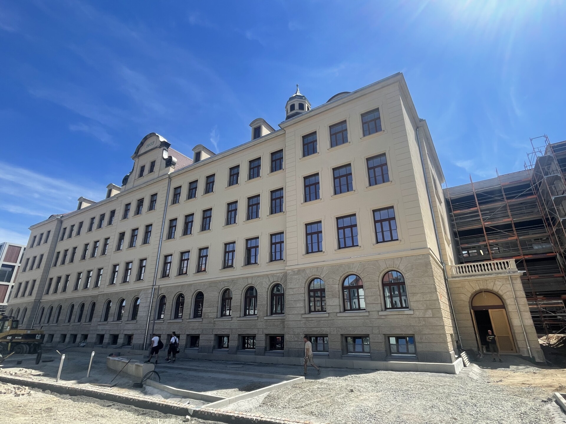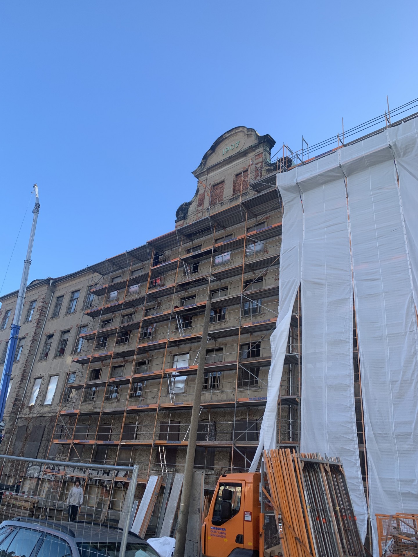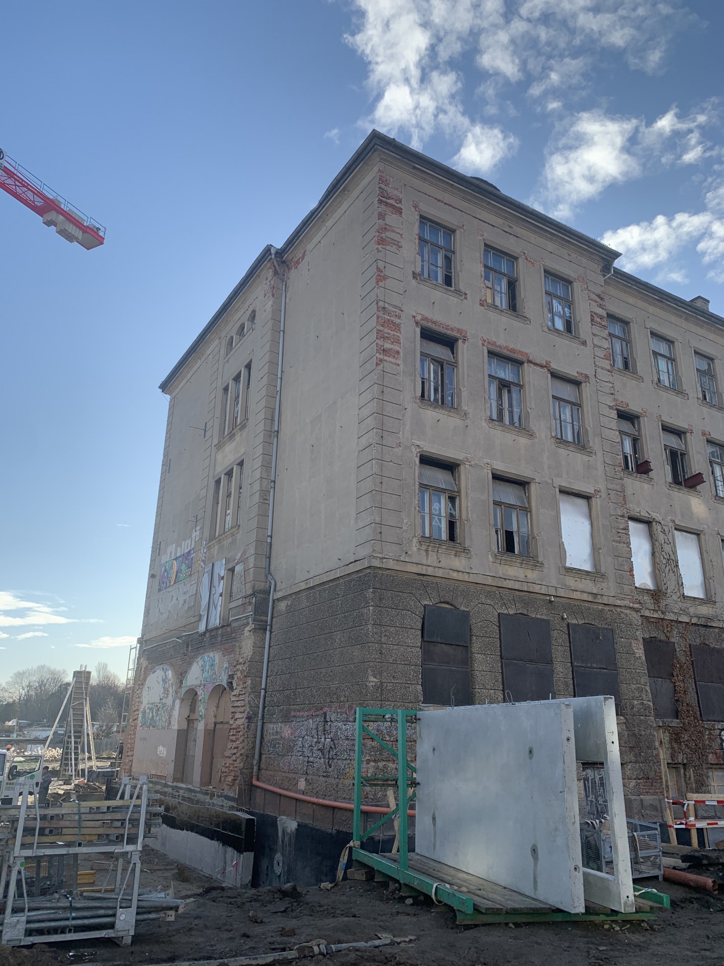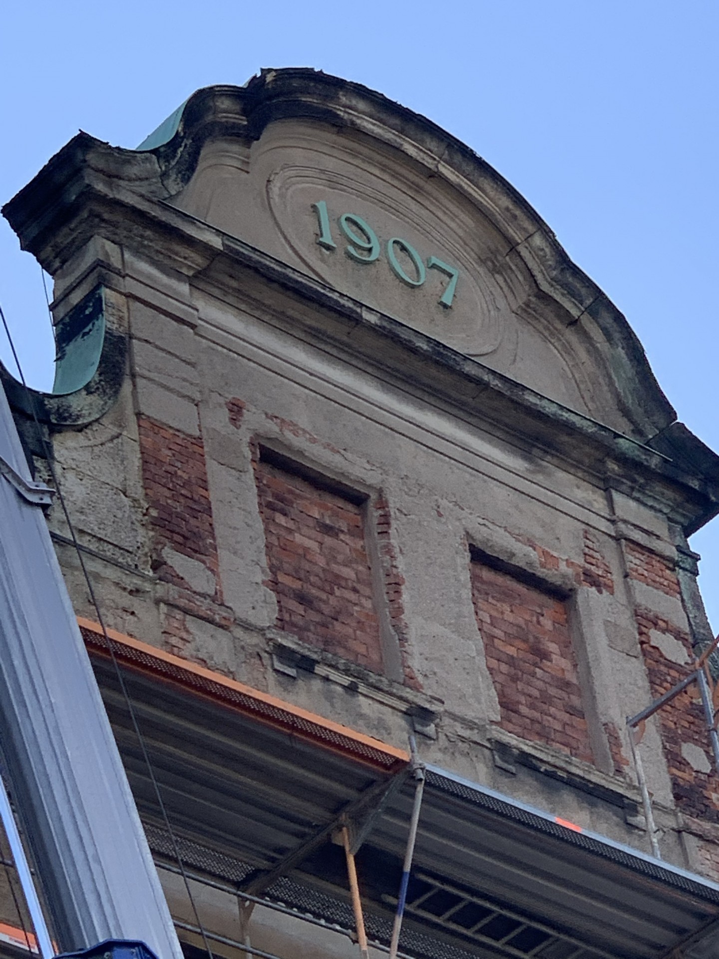 Fertiggestellte HauptfassdeFertiggestellte FassadenachseRestaurierter SchmuckgiebelNeu hergestellte Turmdachreiter nach historischer VorlageFassade im DetailFassade im UrzustandFassadendetail in situFassade im BestandFassade im UrzustandFassade im Urzustand (2)Neuherstellung Fensterrahmungen und Fensterbänke